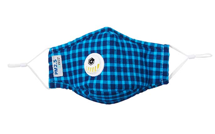 成人純棉立體帶閥口罩-深藍格子