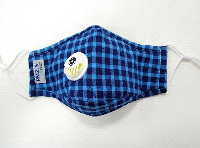 Cotton Mask with Breathing Valve-Dark Blue Plaid
